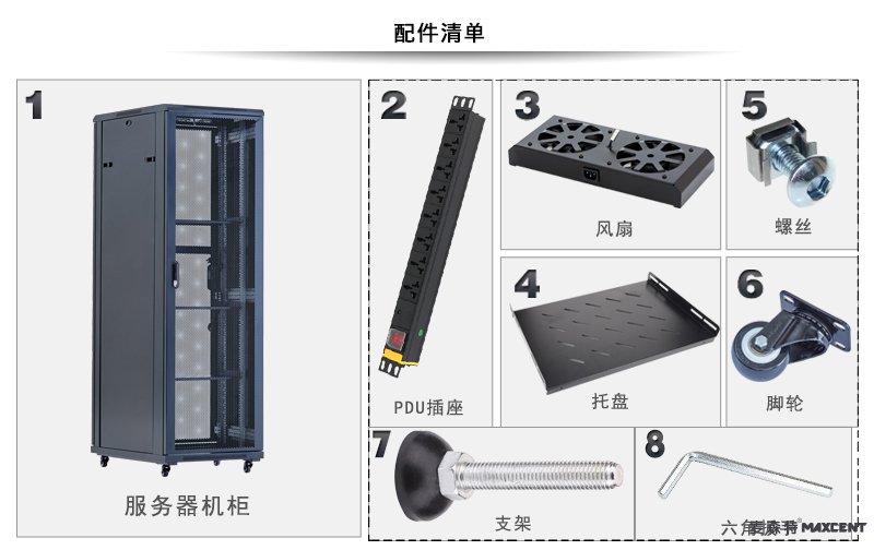 (友情提示:業內要求機柜的板材厚度必須達標,厚度不達標將導致機柜變形,影響機柜的使用壽命和安全系數。機柜主要是對設備起保護作用所以安全性能至關重要,請購買時一定要詢問板材厚度,仔細鑒別?。?br />  麥森特(maxcent)服務器機柜規格